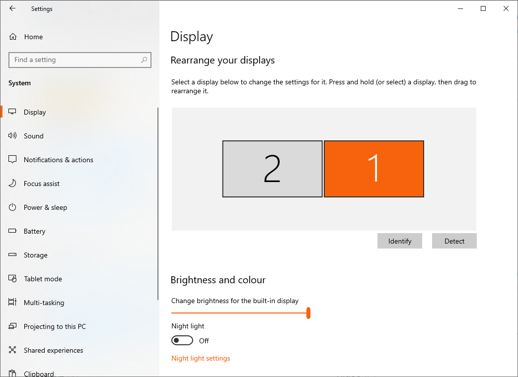 1. Make sure that all displays are connected to the same PC and visible in Windows settings. To check this go to Settings --> System --> Display. The screenshot below shows a primary monitor and one secondary monitor.