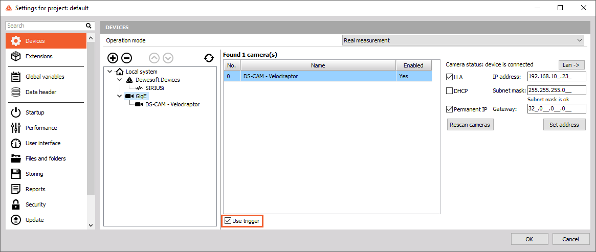 Enabling camera trigger
