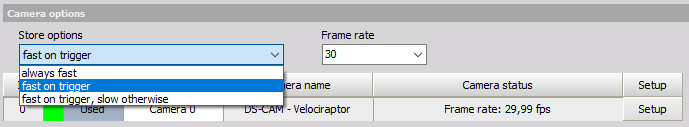 <VideoStoreMode>2</VideoStoreMode> ... Fast on trigger, slow otherwise