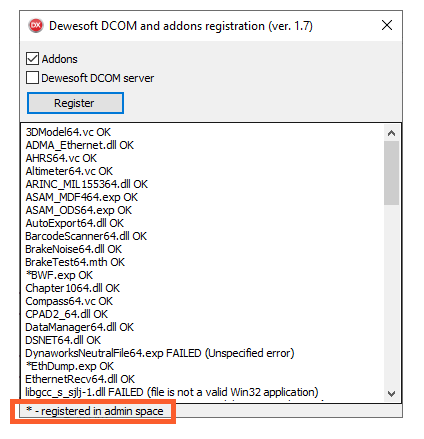To identify which plugin needs administrator rights you can run the DCOM addon registration in the installation folder and see whether there is a star mark in front of the registered plugin.
