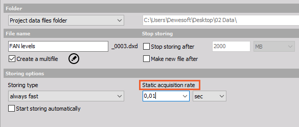 Be aware that faster "static acquisition rate" will increase the data file size.