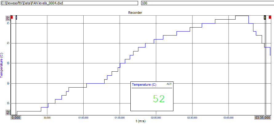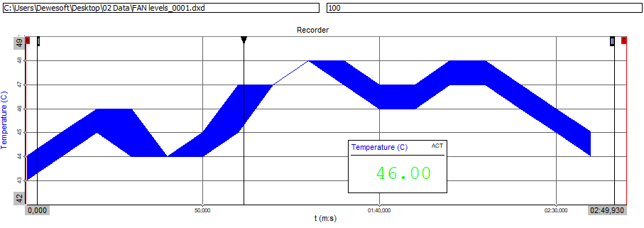 In order to achieve best visualization performance and fast loading of data files, Dewesoft uses a multi level buffer structure. Multi level buffers can be seen by the user especially on recorder widget. The phenomena that this structure causes is detected by visual "blobbing" of the data.