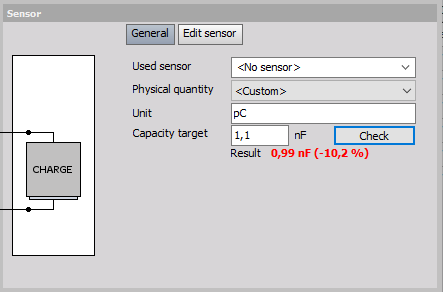 Capacity target check will evaluate combined capacitance of sensor and measurement cable. In case of sensor or cable break or fault this would be detected.