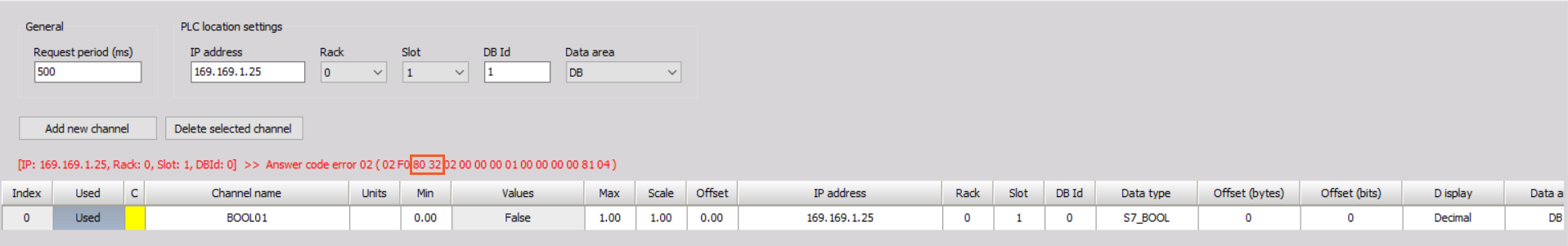 In S7 plugin error codes are defined in hex code so a little help from the Siemens manual is needed when debugging those error codes.