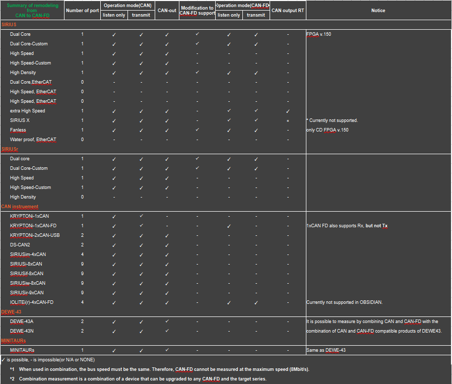 In the table below are shown all the CAN-FD upgrade possibilities on different devices: