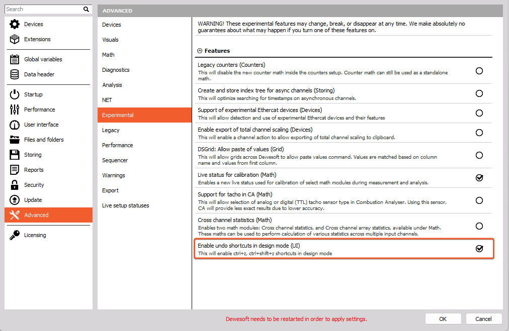 * Can only be used if Enable undo shortcuts in design mode (UI) is enabled (can be found in Settings → Advanced→ Experimental)