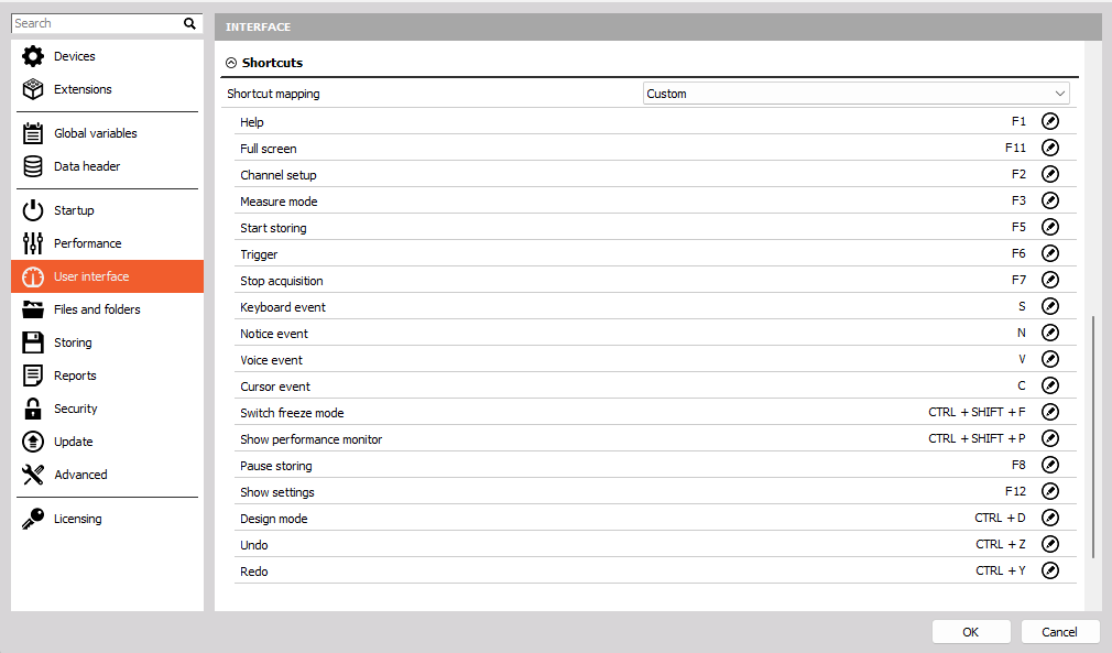 Some basic shortcuts can be modified in the settings menu: