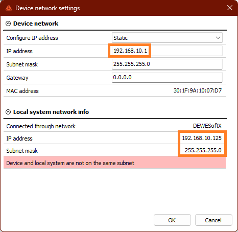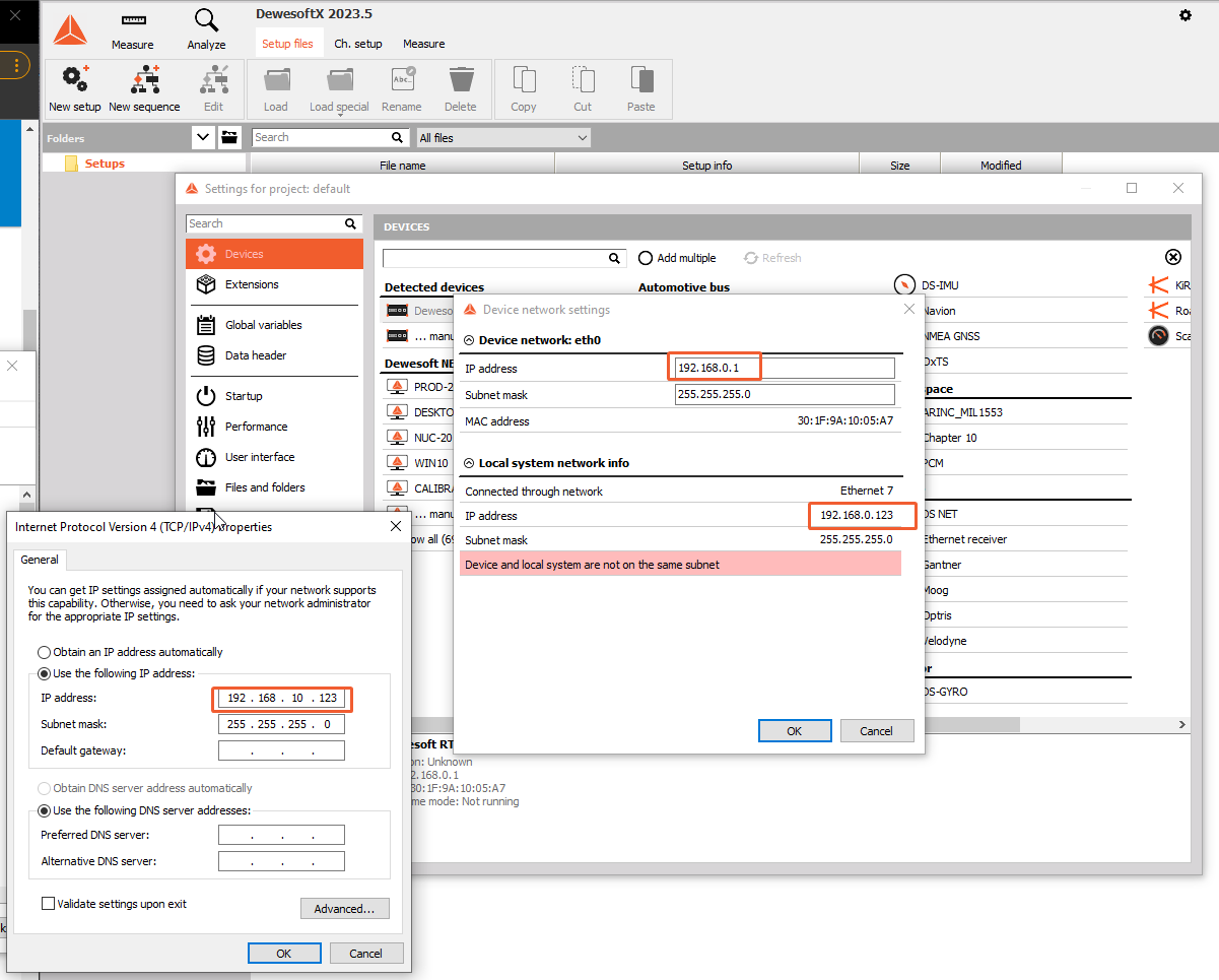 A warning is shown saying that the Obsidian logger and PC are not on the same subnet even though they are: